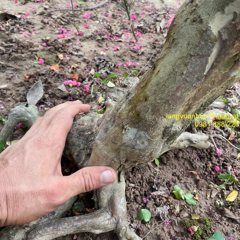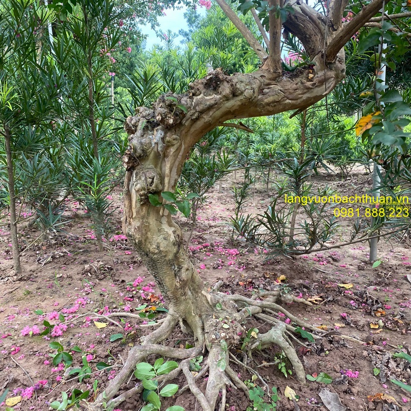- Cây đã trồng được hơn 10 năm. Thân cây lâu năm sần sùi nhìn khỏe khoắn. Tán rộng cành đều rất đẹp